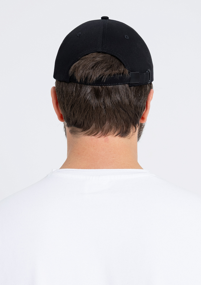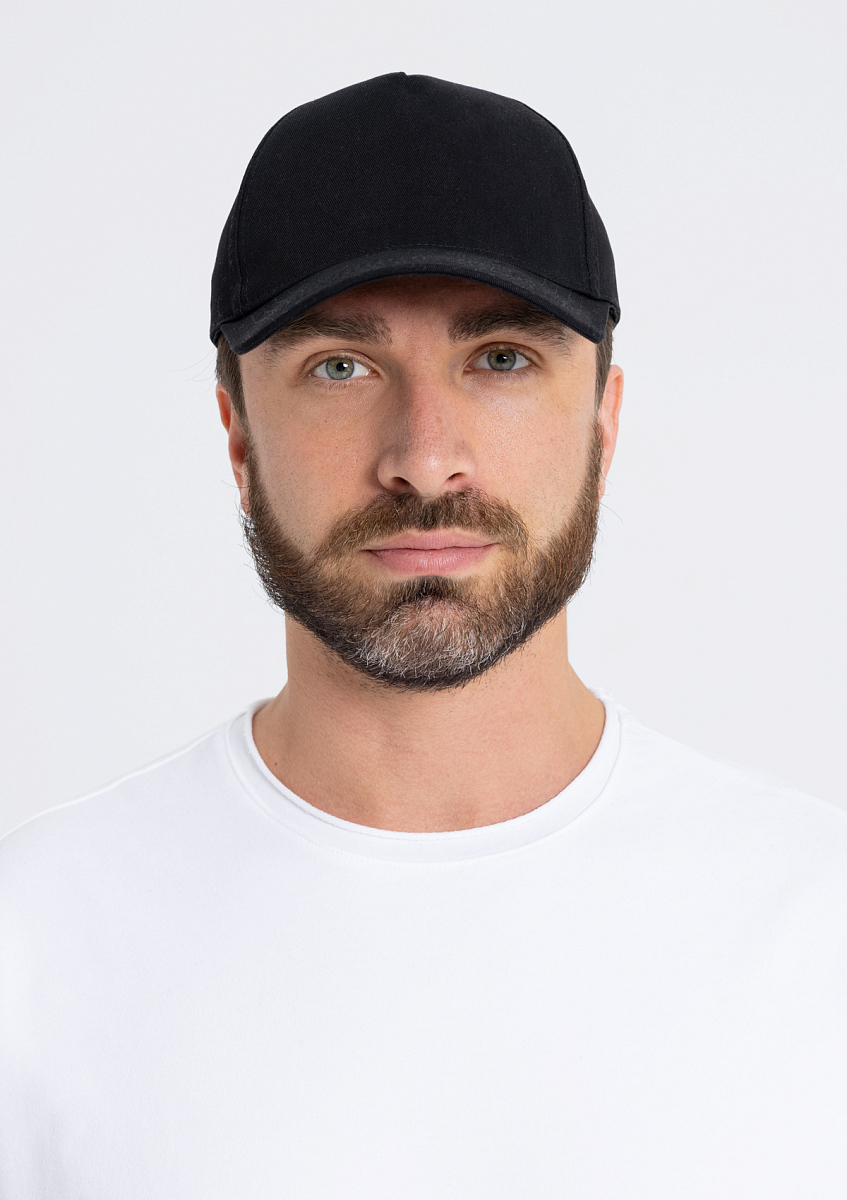 Бейсболка-пятиклинка без лобового шва с изогнутым жестким козырьком. Посадка регулируется ремешком на металлической застежке.