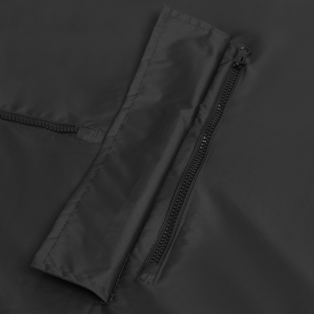 Цельнокроеный дождевик прямого силуэта со спущенным плечом, застежкой на молнию и глубоким прорезным карманом. Для дополнительной защиты от ветра и дождя капюшон дополнен кулисой с резинкой на фиксаторе, а манжет рукава укреплен эластичной резинкой.