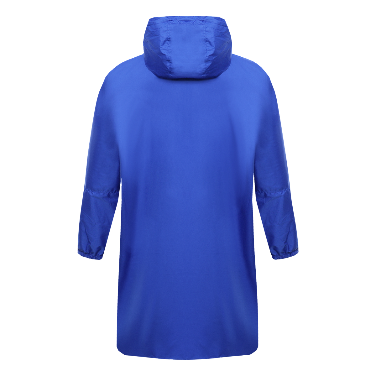 Цельнокроеный дождевик прямого силуэта со спущенным плечом, застежкой на молнию и глубоким прорезным карманом. Для дополнительной защиты от ветра и дождя капюшон дополнен кулисой с резинкой на фиксаторе, а манжет рукава укреплен эластичной резинкой.