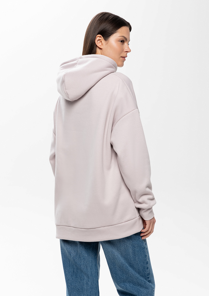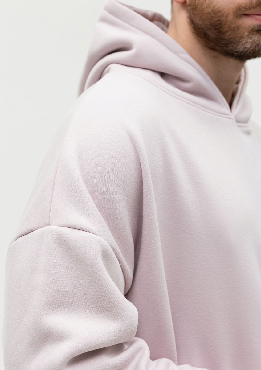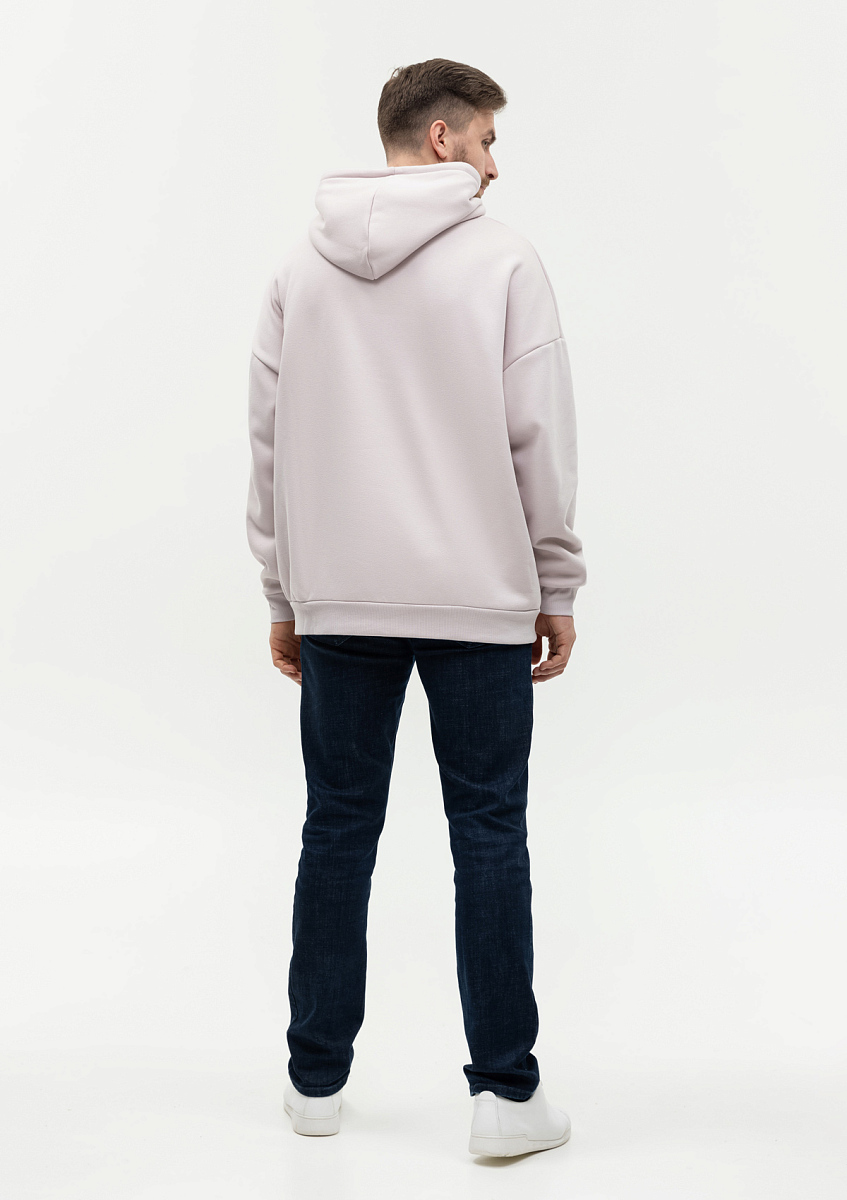 Толстовка свободного силуэта с капюшоном комфортной глубины, спущенной линией плеча и глубоким карманом-кенгуру. Манжет и низ изделия оформлены широкой эластичной резинкой в тон основному цвету.