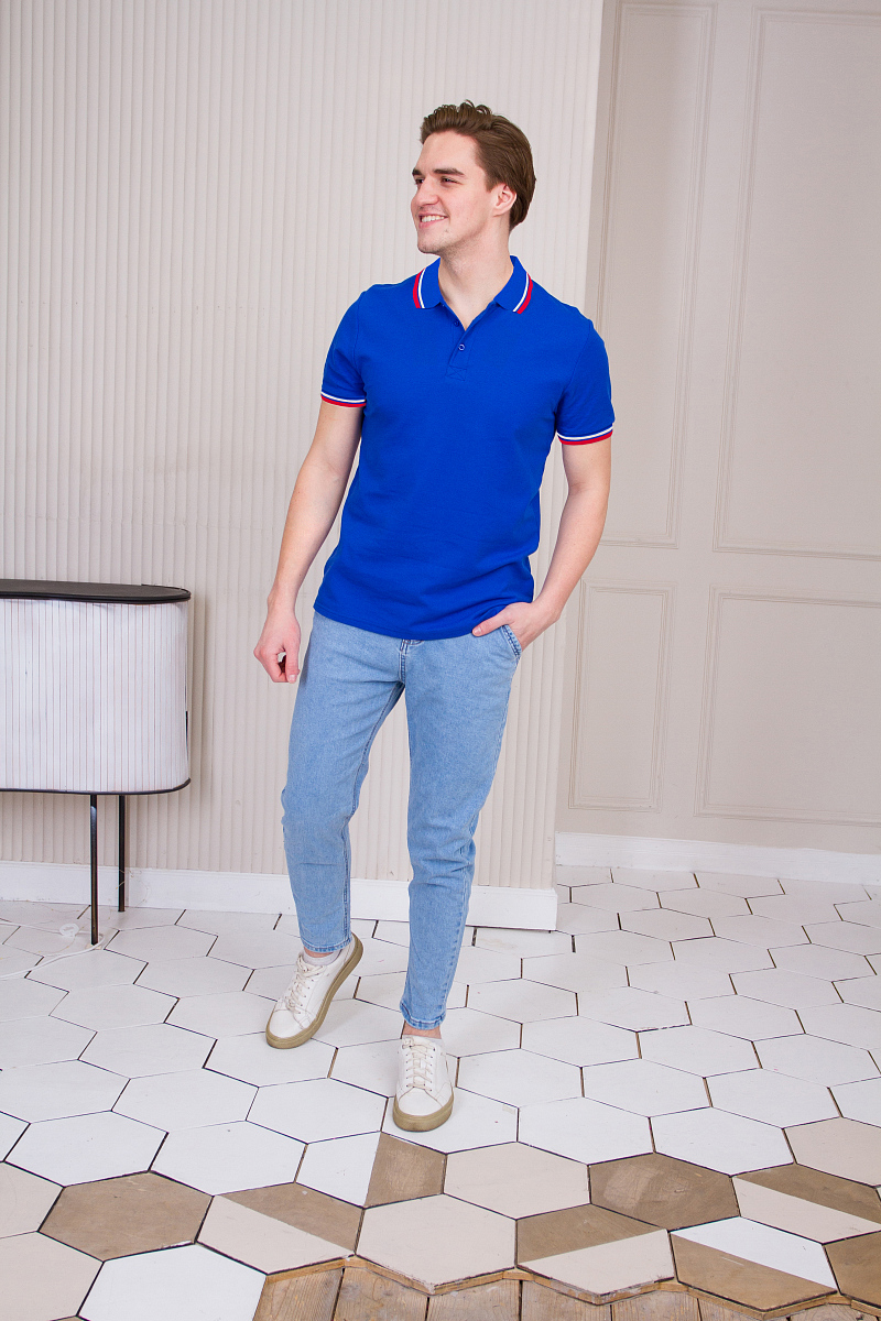 Поло выполнено из плотного и приятного к телу трикотажного пике (80% хлопок 20% полиэстер). Эластична ткань хорошо пропускает воздух и впитывает влагу. Благодаря добавлению синтетического волокна изделие практически не мнется.