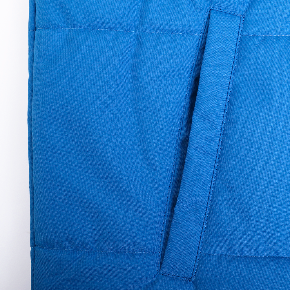 Основной материал – 80% хлопок, 20% полиэстер. Хлопок обеспечивает мягкость и воздухопроницаемость, а полиэстер отвечает за износостойкость. Шелковистый материал обработан водоотталкивающей пропиткой для дополнительного комфорта в непогоду. Утеплитель – синтепон: легкий, не сковывает движения и сохраняет тепло.