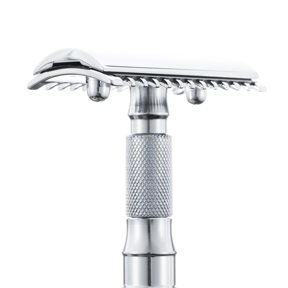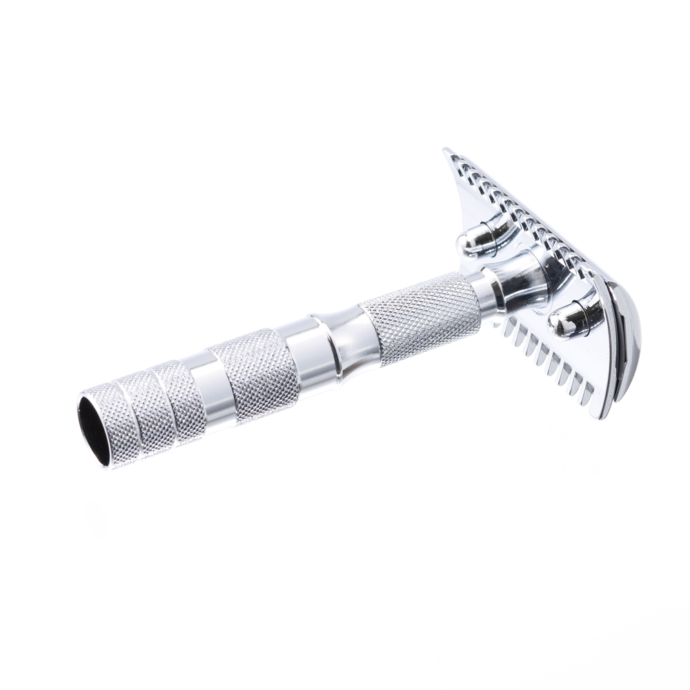 Станок Т-образный для бритья MERKUR 985, глянцевое хромированное покрытие, прямой срез, открытый зубчатый гребень, разборный, лезвие в комплекте 1 шт можно заказать в нашей компании по самой доступной цене от рублей.