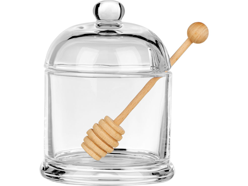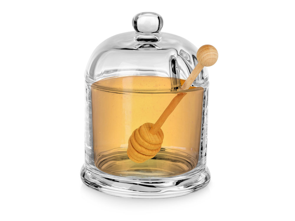 Стеклянная емкость для меда с ложкой точно завоюет место в сердце любителя этого полезного лакомства. Кстати, внутрь можно положить не только мед, но и другие вкусные вещи — варенье, повидло, джемы, которые тоже удобно накладывать ложкой-веретеном.