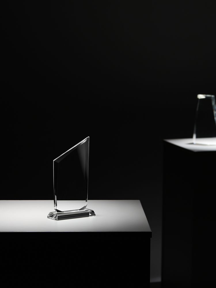 Стела Staklar — это новое прочтение узнаваемой формы в минималистичном и в то же время эффектном дизайне. Острые черты и резкие линии создают легкий и свежий образ, а также дарят чарующие блики всем граням награды.