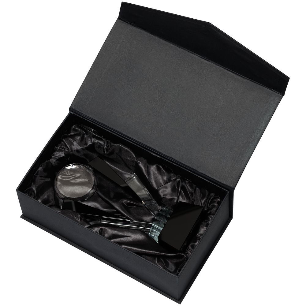 Стела изготовлена из стекла К9, в основе которого лежит оптическое боросиликатное стекло. Эту марку стекла отличает низкий процент посторонних включений, высокий показатель преломления и высокая прозрачность — идеальные качества для изготовления наград премиального уровня.
