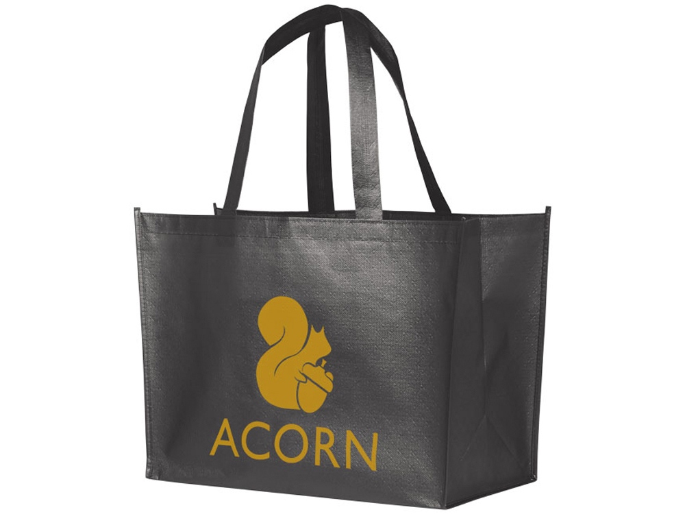 Ламинированная сумка-шоппер Alloy. Легкая, гибкая ламинированная, блестящая сумка-шоппер. Сделана из ламинированного нетканого полипропилена (80 г). Высота ручек 24 см.