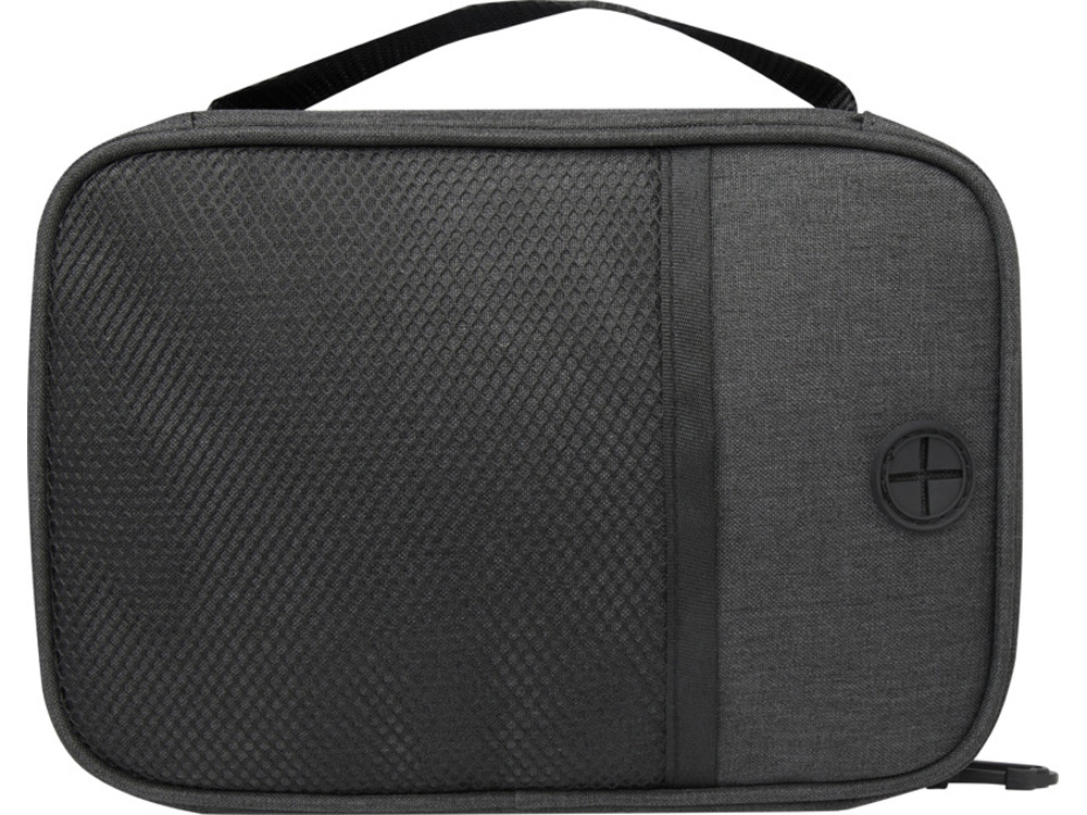 Сумка для техники Ross из переработанного ПЭТ, соответствующего стандарту GRS, идеально подходит для людей, постоянно находящихся в пути, и позволяет организовывать портативные зарядные устройства, зарядные кабели или любые другие электронные аксессуары. Имеет несколько карманов, эластичных петель и вставок для протягивания кабелей, позволяющих заряжать телефон, храня портативное зарядное устройство в сумке. Также имеет пластиковый карабин для крепления к другой сумке. Емкость: 1 литров. 300DGRS certified recycled polyester.