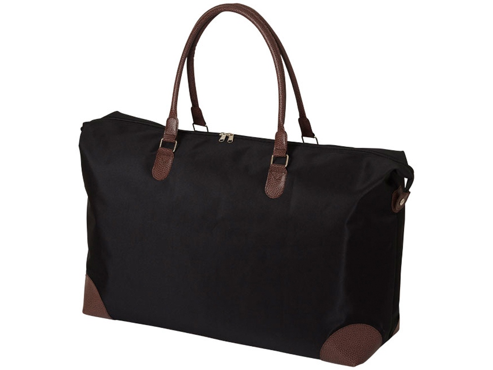 Сумка Adalie. Дорожная сумка с большим основным отделением на молнии и кнопками с обоих сторон. Темно-коричневые ручки из ПВХ придают сумке классический вид. Уплотненное дно сохранит вашу одежду и другие вещи. Внизу пять серебристых наконечников для устойчивости. Микрофибра и ПВХ.