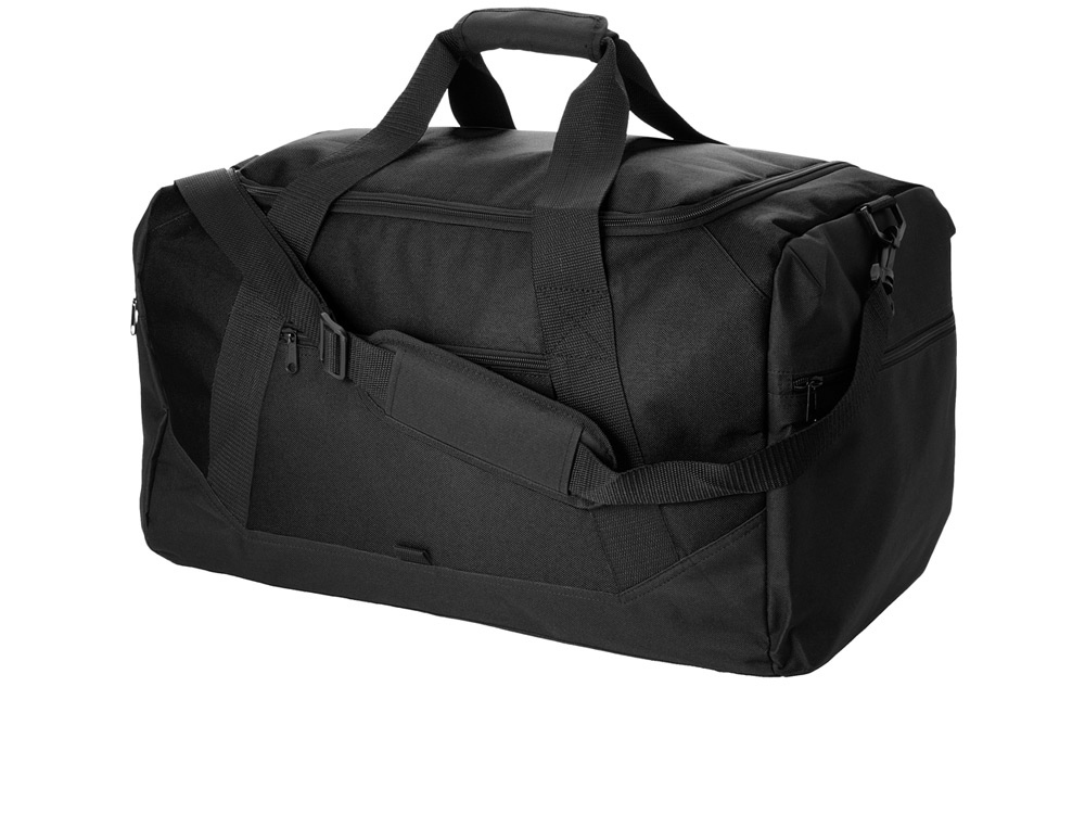 Вместительная дорожная сумка, прекрасно подойдет для деловых поездок или хранения спортивного инвентаря. Различные варианты расцветки. Основное отделение и карманы на молнии. Регулируемый плечевой ремень. Мягкие ручки. На водозащитный чехол из полиэстера возможно нанесение логотипа.