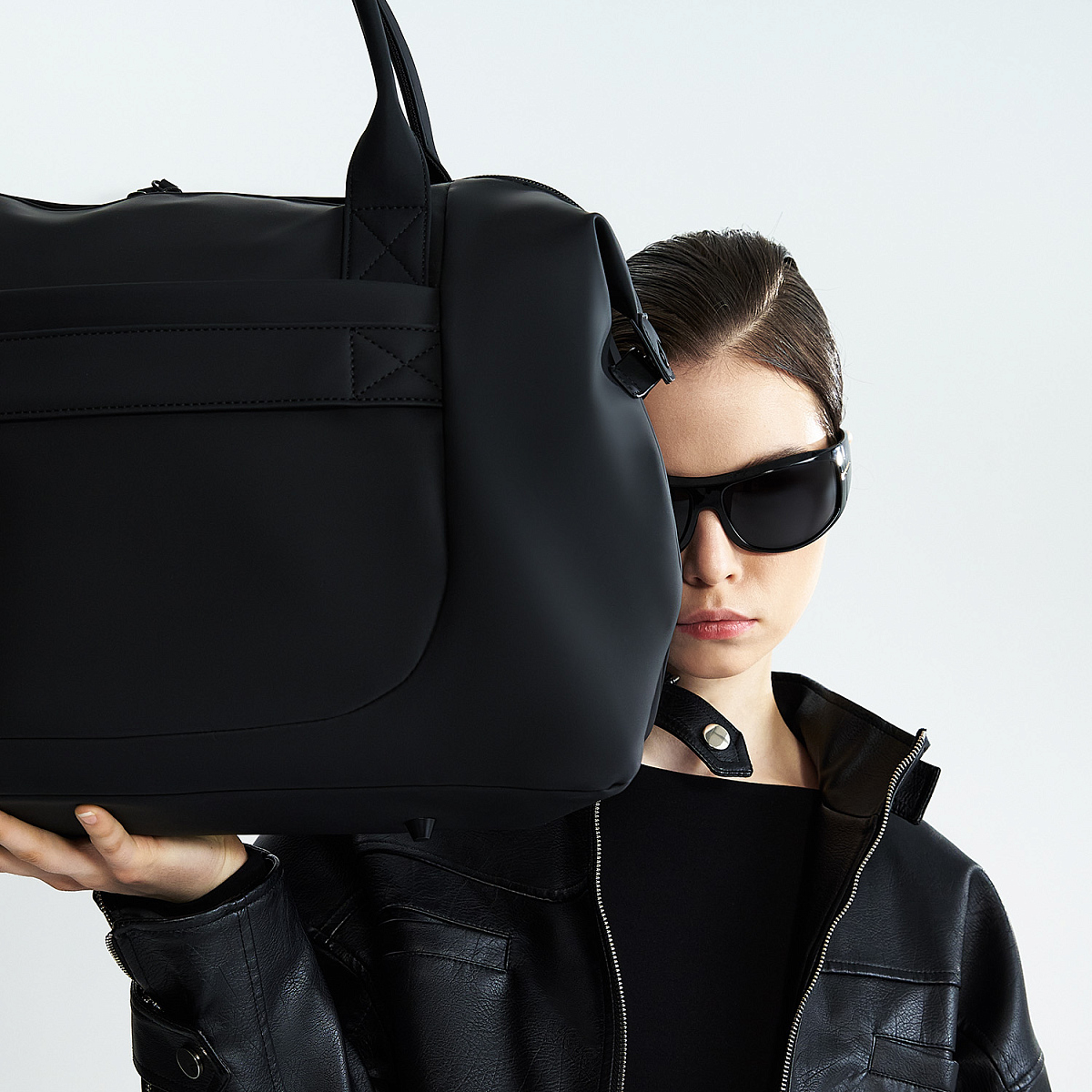 Материал отталкивает влагу, устойчив к царапинам и долго сохраняет аккуратный вид. Магнитные боковые фиксаторы подчеркивают чистоту линий. Внутри — карман на молнии и два отделения, снаружи — скрытые боковые карманы.