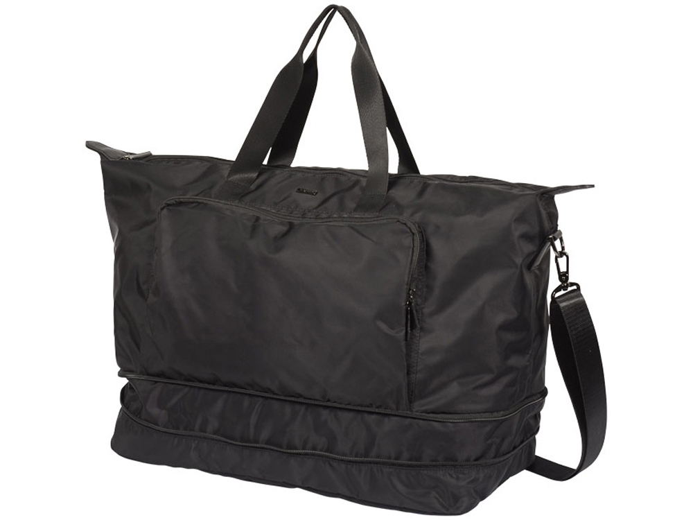 Сумка для ноутбука 15 раскладывающаяся. Сумка в виде вещмешка может раскладываться на 6 см при открытии нижней молнии. Основное отделение на молнии с акцентами из ПУ и кнопками с обеих сторон. Основное отделение с карманом на молнии и уплотненным отделением для ноутбука. Съемный ремень на плечо, карманы на молнии спереди и сзади. Стильный брендинг и акценты. Высота ручек 18 см. 290Т нейлон с ПУ основанием.
