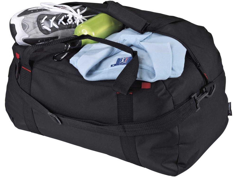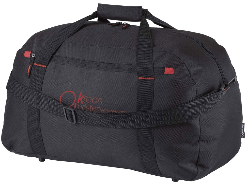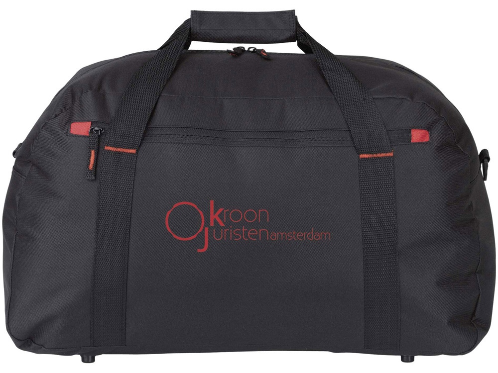 Дорожная сумка Vancouver. Большая дорожная сумка с красным элементом отделки, передним карманом на молнии и регулируемым плечевым ремнем.