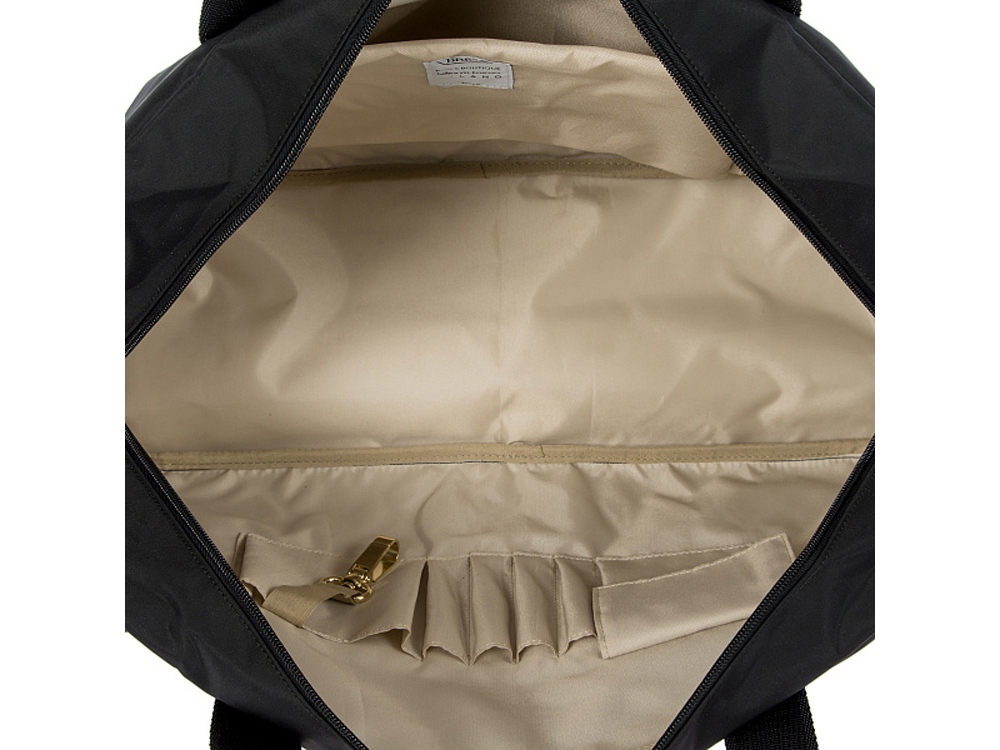 Маленькая сумка с несколькими карманами из коллекции X-Collection изготовлена из мягкого, легкого и прочного переработанного нейлона, с защитой от влаги. Компактный, но вместительный дизайн и внутренняя организация делают её особенно практичной. Внутри имеется мягкий карман для планшета и несколько удобных отделений для хранения. Снаружи имеются два больших кармана на молнии. Эту сумку можно носить за ручки или через плечо с помощью съемного регулируемого плечевого ремня. Основное отделение оснащено застежкой-молнией с двумя бегунками. Сзади имеется ремешок для крепления к ручке чемодана. Сумка дополнена деталями из натуральной кожи, одним из фирменных элементов дизайна Bric's, и тканевой подкладкой.