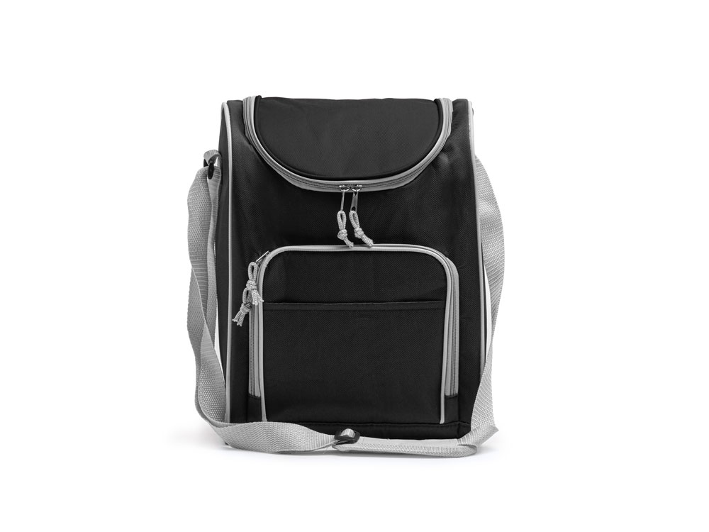 Универсальная сумка-холодильник из полиэстера 600D. Изотермическое основное отделение и практичный передний карман идеально подходят для хранения продуктов или напитков и поддержания их идеальной температуры. Включает регулируемый транспортировочный ремень.