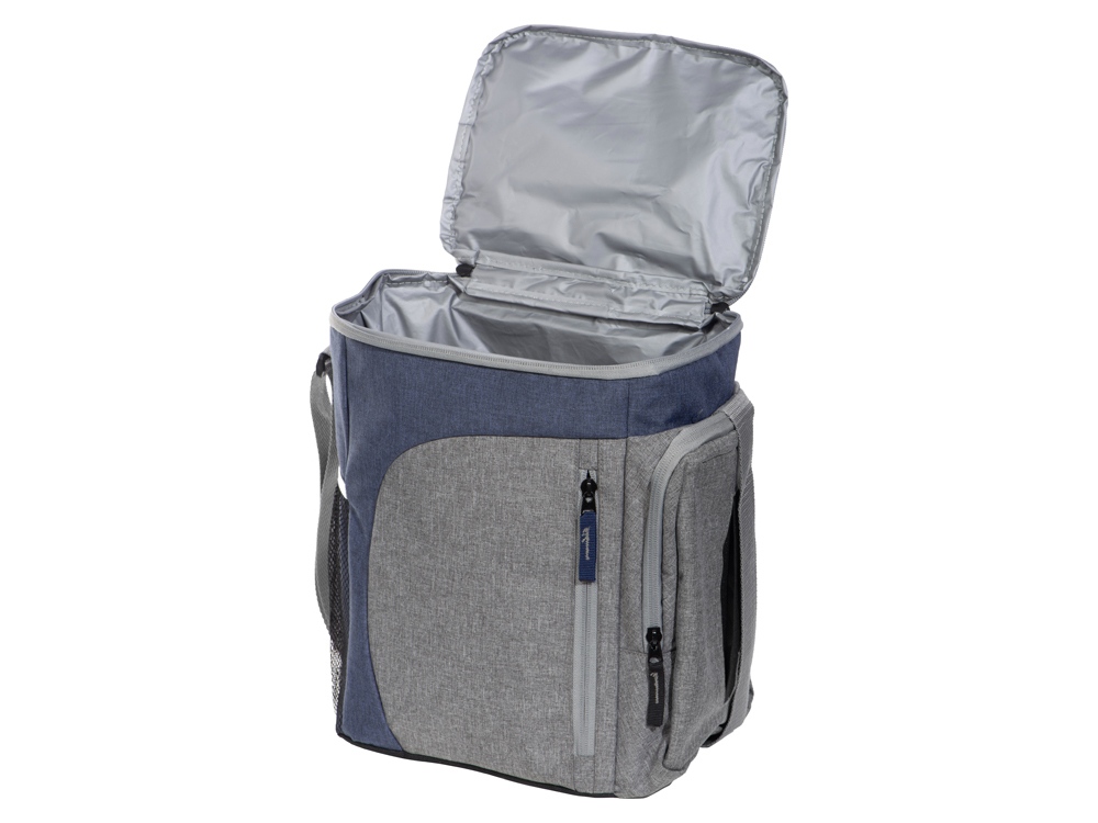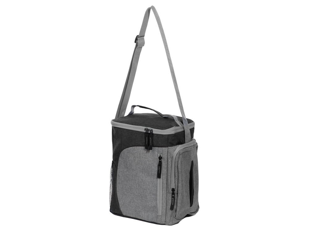 Удобная изотермическая сумка, в которую вы легко можете поместить продукты, несколько ланчбоксов и даже 12-15 банок по 0,33 л. Снаружи сетчатый карман, фронтальный карман для мелочей на молнии, отделение для хранения влажных салфеток и ручка для переноски. Лямка на плечо регулируется по длине. Время поддержания температуры 3-5 ч в зависимости от окружающей температуры.