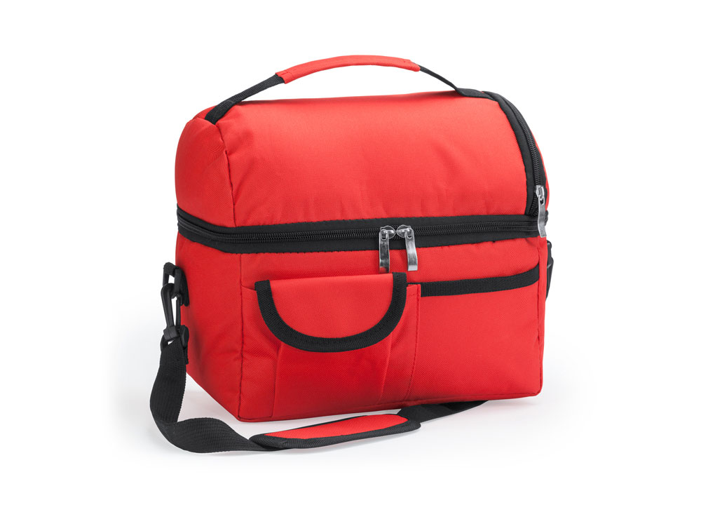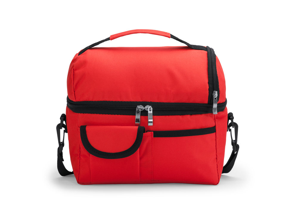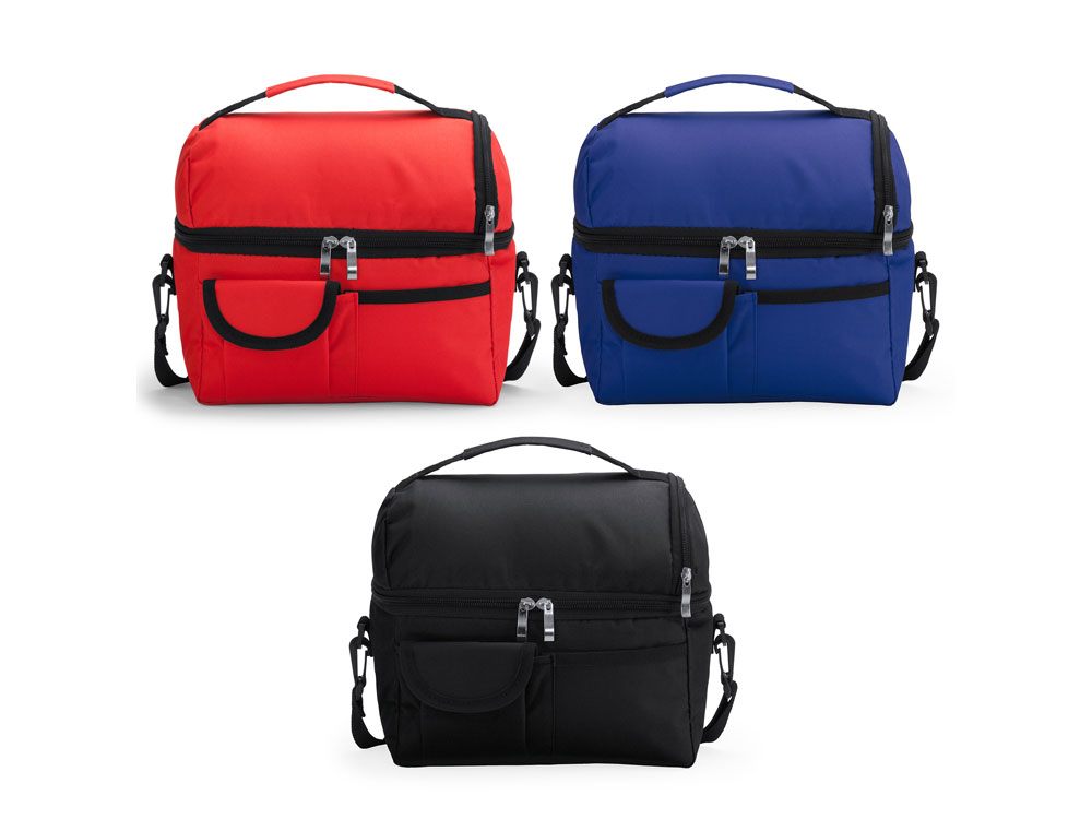 Универсальная сумка-холодильник из полиэстера 600D. Изотермические внутренние отделения и практичные внешние карманы. Регулируемый мягкий плечевой ремень с карабином. Идеальная изотермическая сумка для переноски еды на работу.