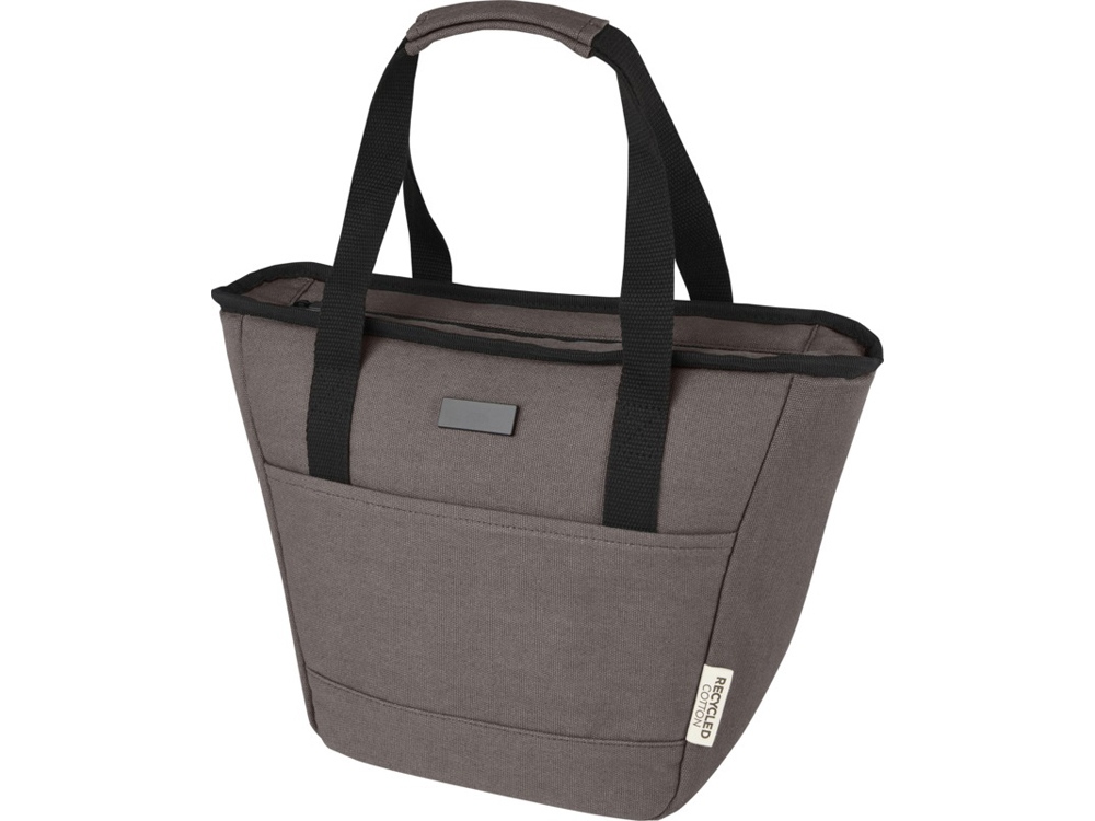 Изготовленная из высокопрочных экологичных материалов, брезента и подкладки из переработанного ПЭТ, соответствующих стандарту GRS, пищевая сумка-холодильник на 9 банок Joey имеет изолированное главное отделение с подкладкой из PEVA, пригодной для применения с пищевыми продуктами, открытый карман спереди и две усиленных вязанных ручки для удобной переноски. Декоративная металлическая пластина может придать логотипу сияние благодаря утонченному матовому покрытию.