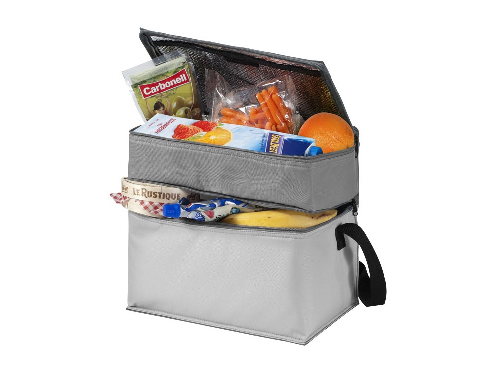 Удобная сумка-холодильник – прекрасный подарок для активных людей. Пригодится любителям загородных прогулок, незаменима на пляже. В этой сумке два отделения, то есть можно разделить еду и напитки. На внешний чехол возможно нанесение термотрансфера.