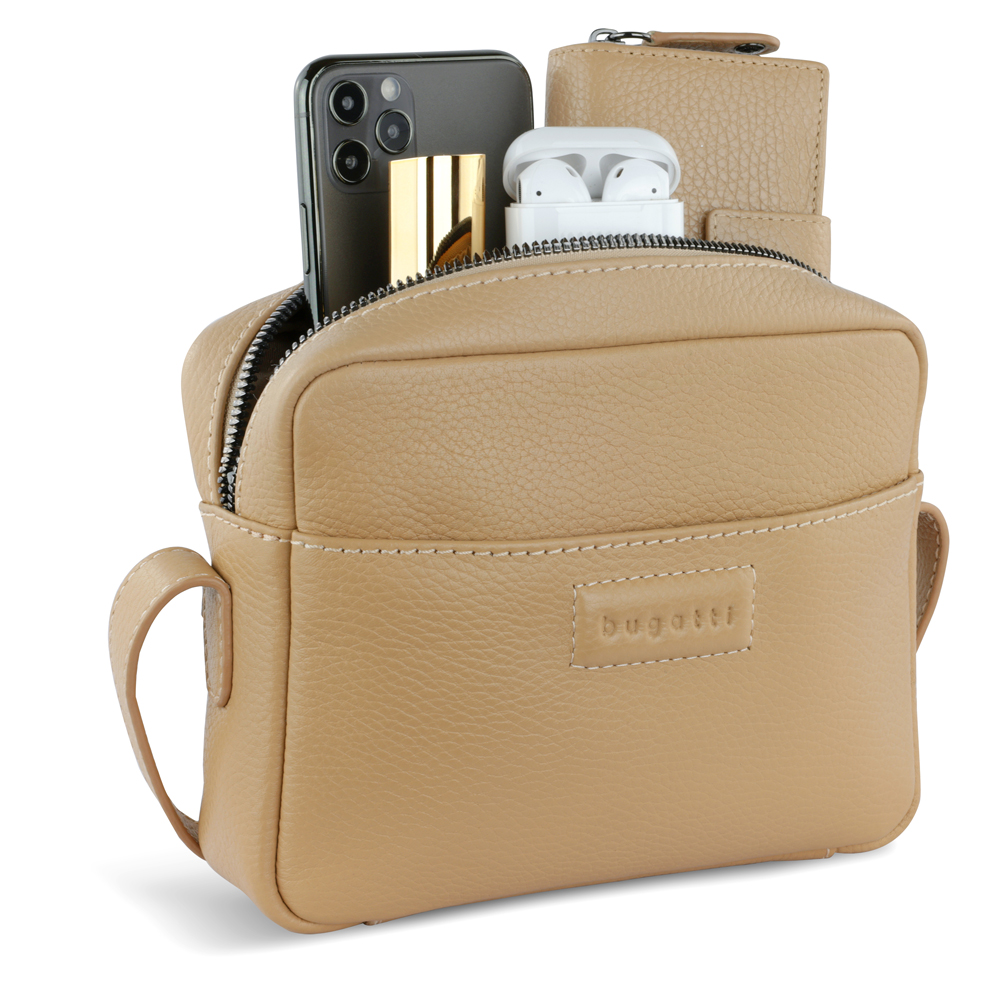 Сумка кросс-боди женская BUGATTI Elsa, песочного цвета, воловья кожа/полиэстер, 19х5,5х14 см можно заказать в нашей компании по самой доступной цене от 7 700 рублей.