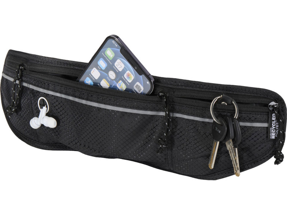 Сумка на пояс Доман изготовлена из переработанной ткани рипстоп, сертифицированной согласно GRS, имеет водоотталкивающую отделку, подкладку из материала RPET, сертифицированного согласно GRS, и светоотражающие элементы. Это компактное и легкое решение для бега, пешего туризма и других видов активного отдыха. Сумка на пояс имеет три кармана на молнии, в которых можно хранить организованно и раздельно телефон, наушники, ключи и другие предметы. Светоотражающие детали улучшают видимость при использовании рано утром или вечером. Спинка выполнена из легкой влагоотводящей сетки, которая улучшает циркуляцию воздуха и уменьшает потоотделение. Регулируемый эластичный пояс обеспечивает надежную и удобную посадку во время движения.