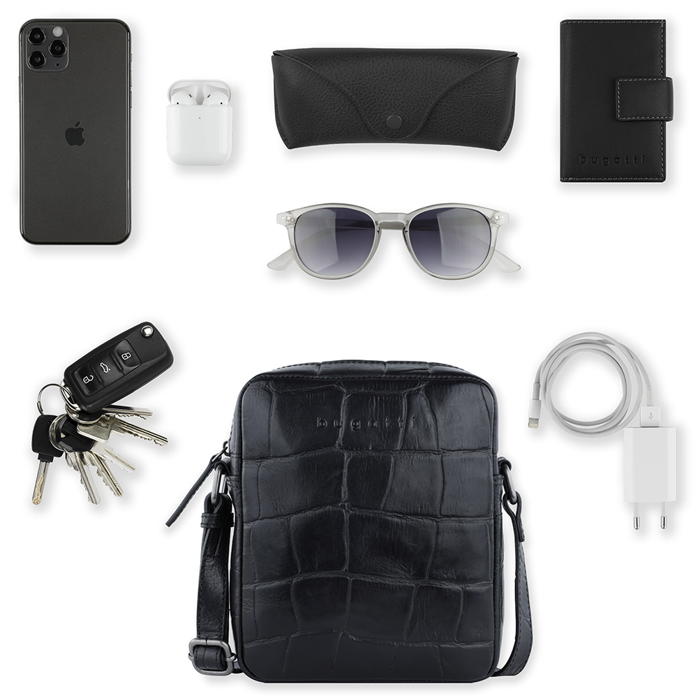 Сумка наплечная мужская BUGATTI Nevio, чёрная, воловья кожа/хлопок, 17,5х5,5х19,5 см, 2 л можно заказать в нашей компании по самой доступной цене от 12 550 рублей.