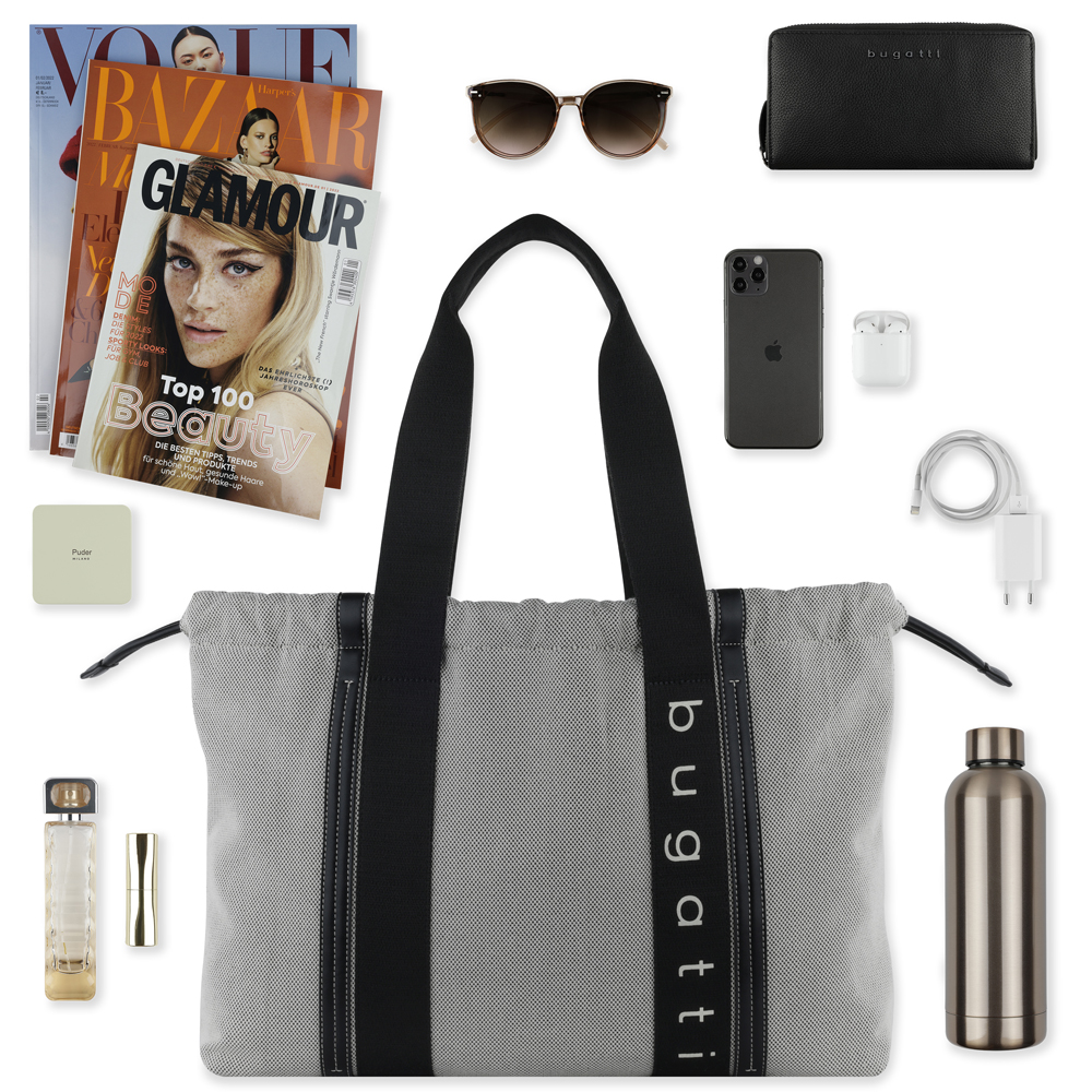 Сумка-шоппер женская BUGATTI Ambra, серо-черный цвет, хлопок/полиэстер, 45х10х34 см можно заказать в нашей компании по самой доступной цене от 11 340 рублей.