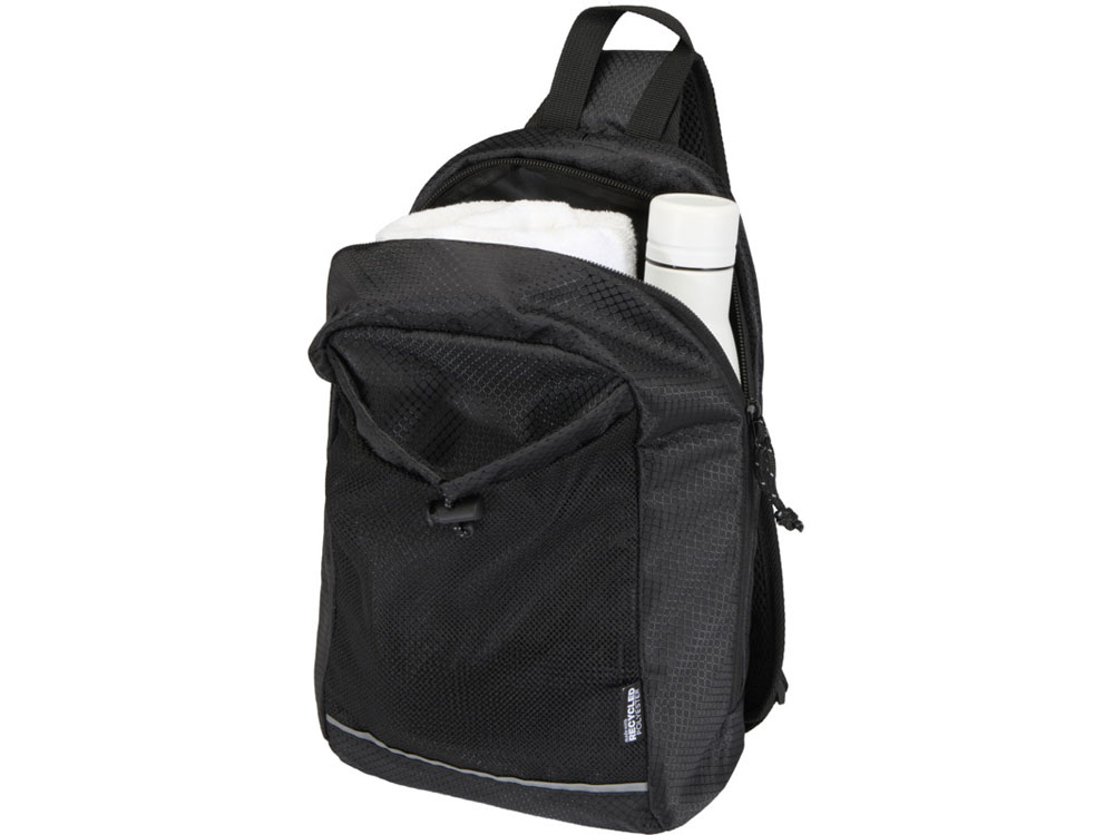 Сумка-слинг через плечо Доман с системой для питья изготовлена из переработанной ткани рипстоп, сертифицированной согласно GRS, с водоотталкивающей отделкой, подкладкой из материала RPET, сертифицированного согласно GRS, и светоотражающими элементами. Она предназначена для высокоскоростных походов, пробежек по пересеченной местности, фестивалей и любых других мероприятий, где вам необходимо нести воду и предметы первой необходимости, не обременяя себя лишним объемом. Сумка имеет основное отделение на молнии с внутренним основным карманом, сетчатый передний карман с эластичным шнурком для надежного крепления бутылки с водой и большой карман быстрого доступа на задней стороне для телефона или других мелких предметов. Регулируемый ремень и дышащая сетчатая спинка обеспечивают комфорт при ношении. Объем: 6 литров.