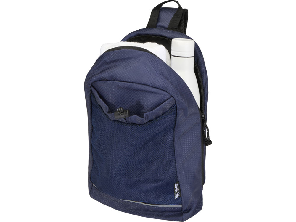 Сумка-слинг через плечо Доман с системой для питья изготовлена из переработанной ткани рипстоп, сертифицированной согласно GRS, с водоотталкивающей отделкой, подкладкой из материала RPET, сертифицированного согласно GRS, и светоотражающими элементами. Она предназначена для высокоскоростных походов, пробежек по пересеченной местности, фестивалей и любых других мероприятий, где вам необходимо нести воду и предметы первой необходимости, не обременяя себя лишним объемом. Сумка имеет основное отделение на молнии с внутренним основным карманом, сетчатый передний карман с эластичным шнурком для надежного крепления бутылки с водой и большой карман быстрого доступа на задней стороне для телефона или других мелких предметов. Регулируемый ремень и дышащая сетчатая спинка обеспечивают комфорт при ношении. Объем: 6 литров.