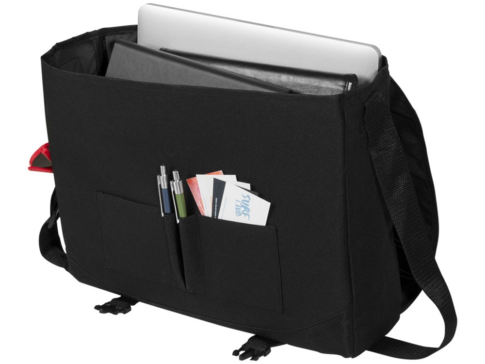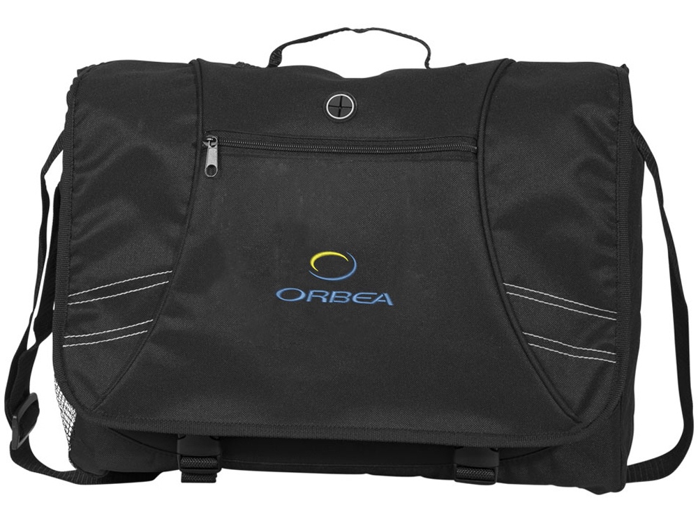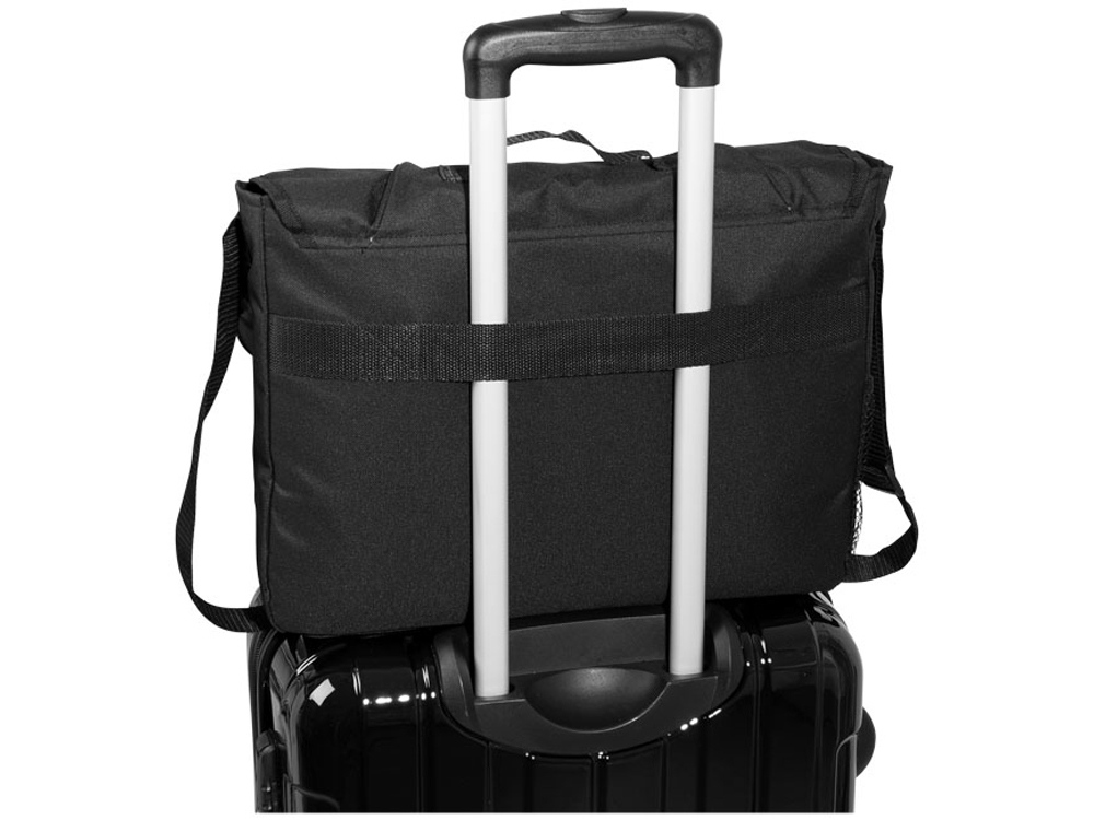 Сумка Track для ноутбука 15,6. Сумка на плечо с отделением для ноутбука 15,6. Карман на молнии с панелью - органайзером и панель со скошенным карманом и петельками для ручек. На клапане двойная застежка, порт для наушников, передний карман на молнии и белая строчка для акцента. Карман из сетки для бутылки. Регулируемый ремень на плечо. Стропа для крепления к чемодану. 600d полиэстер.