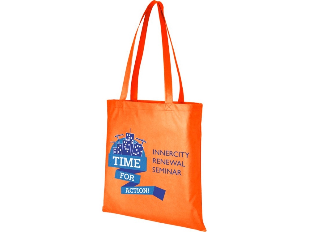 Отличный промо-сувенир для любой акции. На нетканую основу из полипропилена отлично осуществляется нанесение термотрансфера. Большой объем, прочность и компактность – залог частого использования сумки. Высота ручек 32 см.