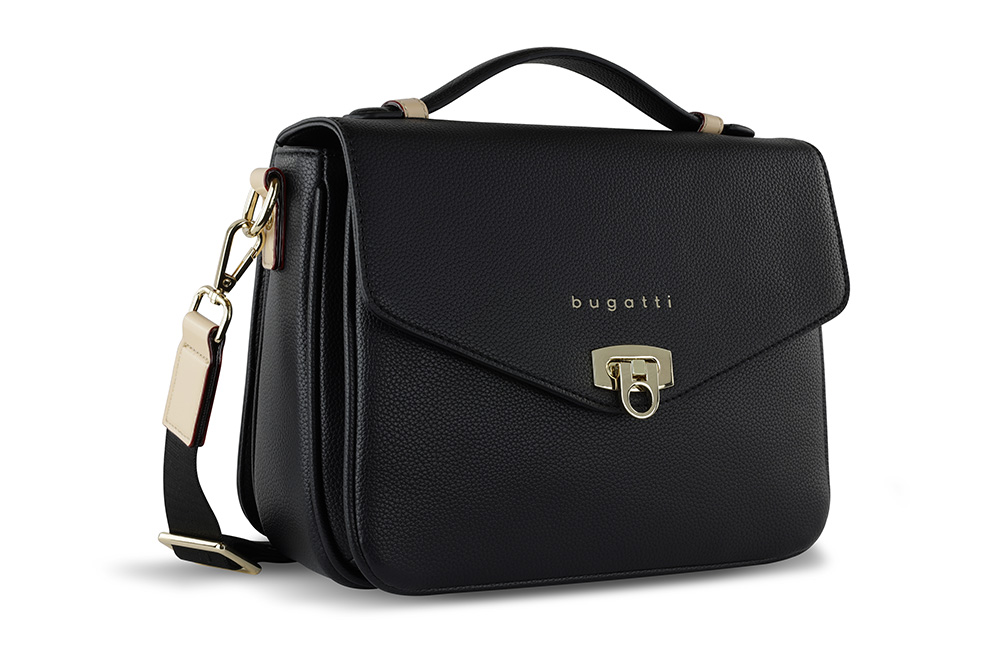 Сумка женская BUGATTI Ella, чёрная, полиуретан, 29х10х22 см можно заказать в нашей компании по самой доступной цене от 10 580 рублей.
