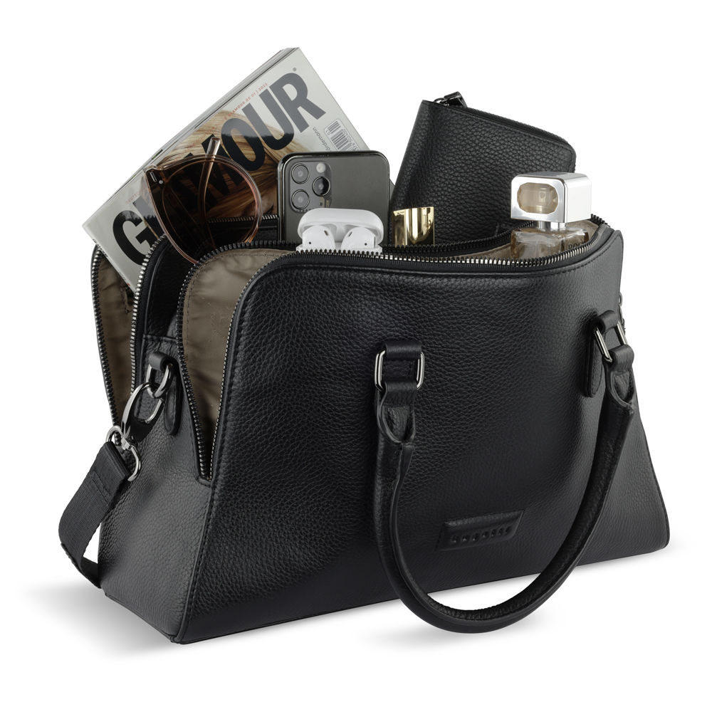 Сумка женская BUGATTI Elsa, чёрная, воловья кожа/полиэстер, 32х13х22 см можно заказать в нашей компании по самой доступной цене от 24 650 рублей.