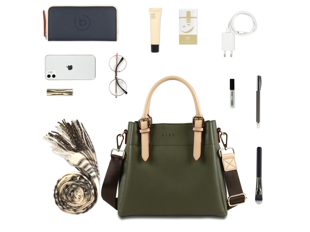 Внешняя организация: ручки высотой 10 см, съёмный регулируемый плечевой ремень (до 130 см), ножки на дне