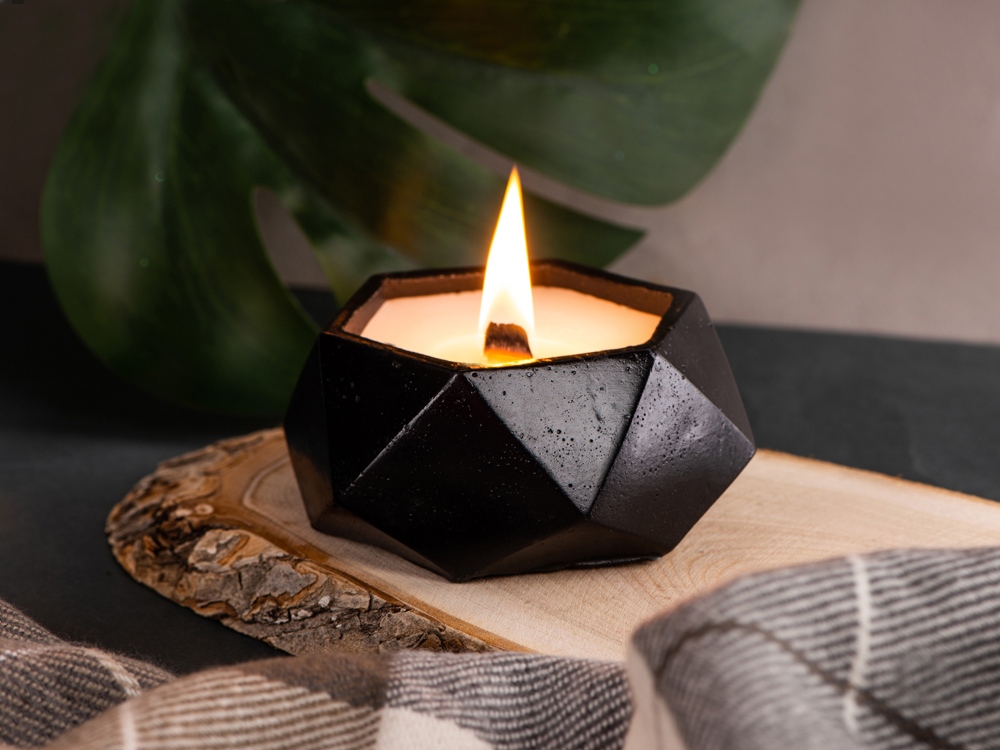 - деревянный фитиль уютно потрескивает при горении