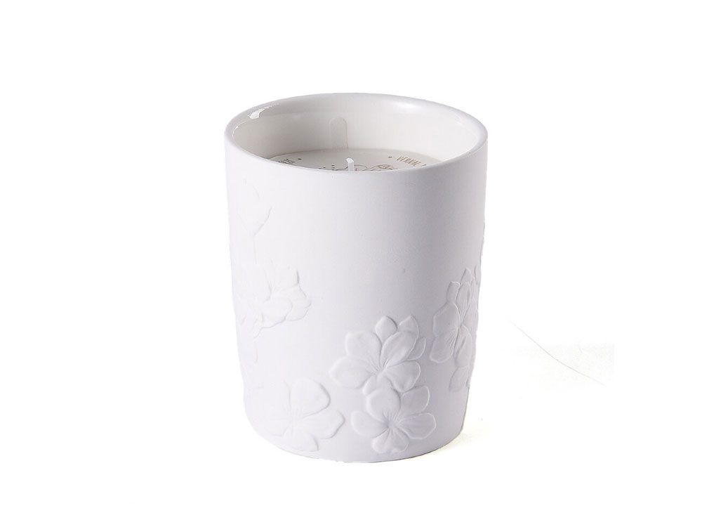 Ароматическая свеча с цветочным ароматом в фарфоровом кашпо от Valerie Concept. Кашпо выполнено из высокотемпературного прочного фарфора, украшено объёмным цветочным барельефом. Свеча из натурального соевого воска с хлопковым фитилем, подарит вам долгие часы наслаждения и умиротворения, благодаря нежному аромату с нотками чарующих цветов и хлопка.