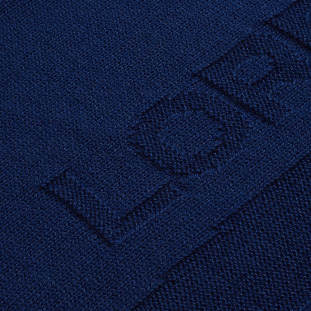 Однотонный свитер с фактурным вывязанным логотипом в фирменном цвете вашей компании.