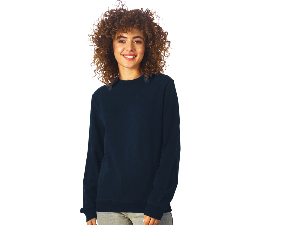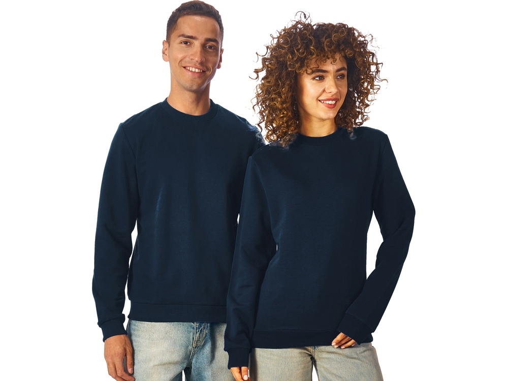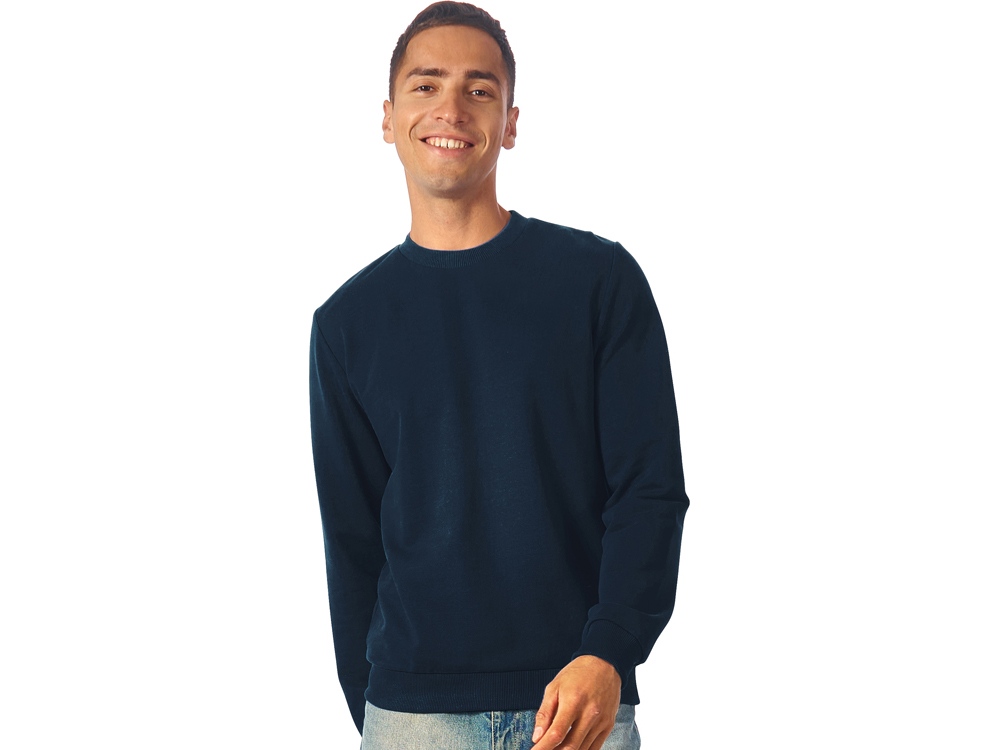 Свитшот из плотного 3х ниточного хлопкового футера. Горловина, манжеты и низ отделан рибом 2х2. Горловина спинки внутри дополнительно укреплена тесьмой с выработкой елочка. Полотно из утяжеленного хлопкового футера внутри с петельками без начеса.
