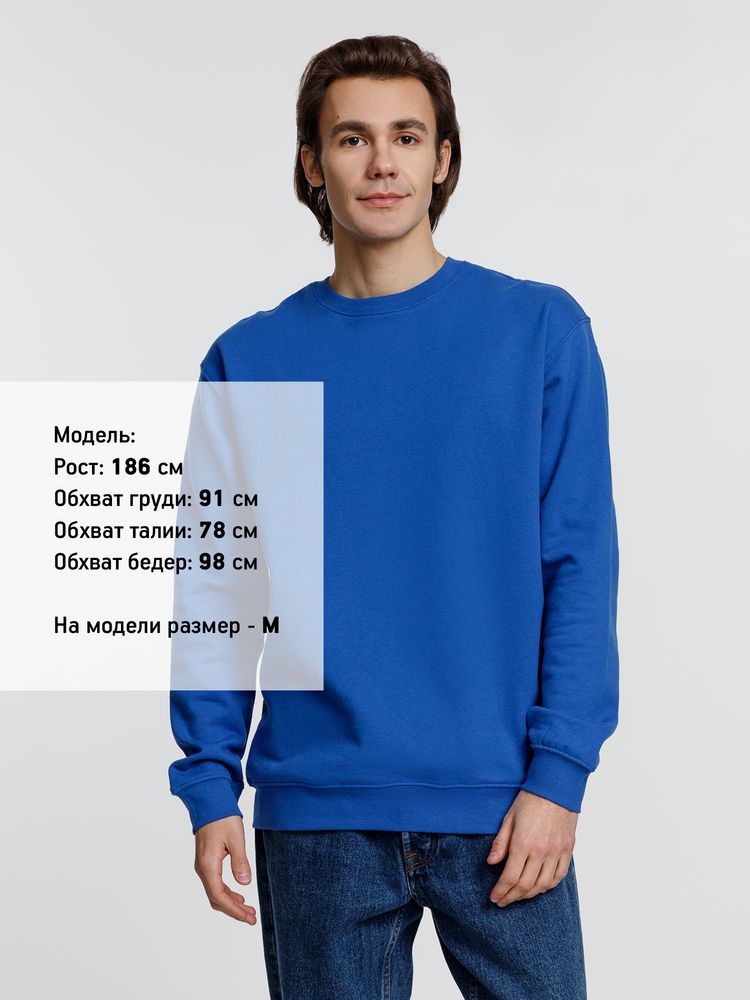 Свитшот унисекс из хлопка и переработанного полиэстера с круглым вырезом и втачным рукавом.