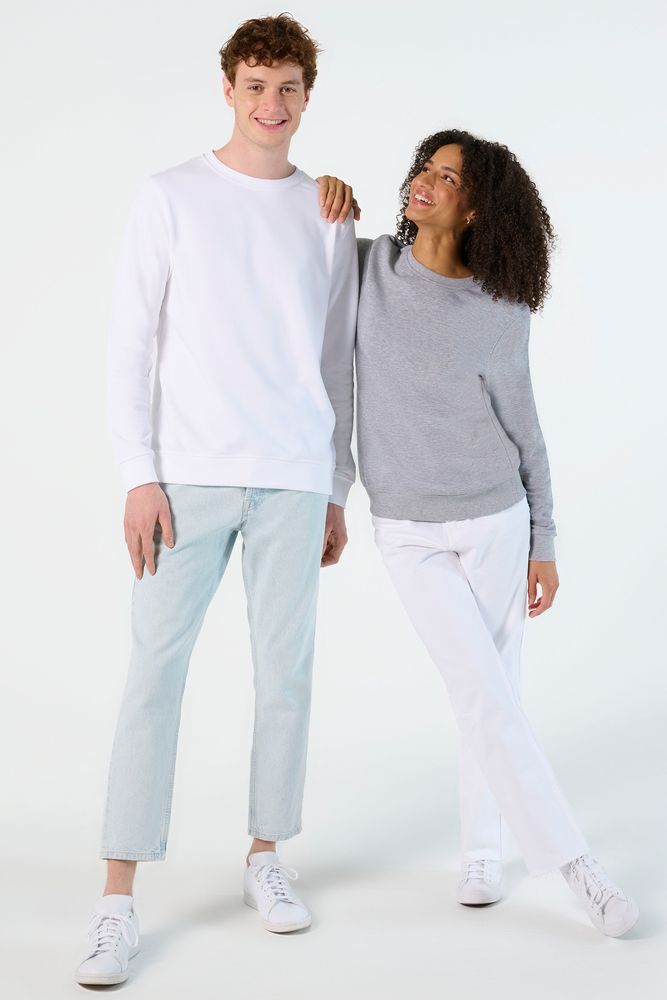 Свитшот унисекс из органического хлопка с круглым вырезом и втачным рукавом. Лейбл производителя в боковом шве изнутри, в шве горловины — только бирка с размером, что позволяет вам нанести свой логотип.