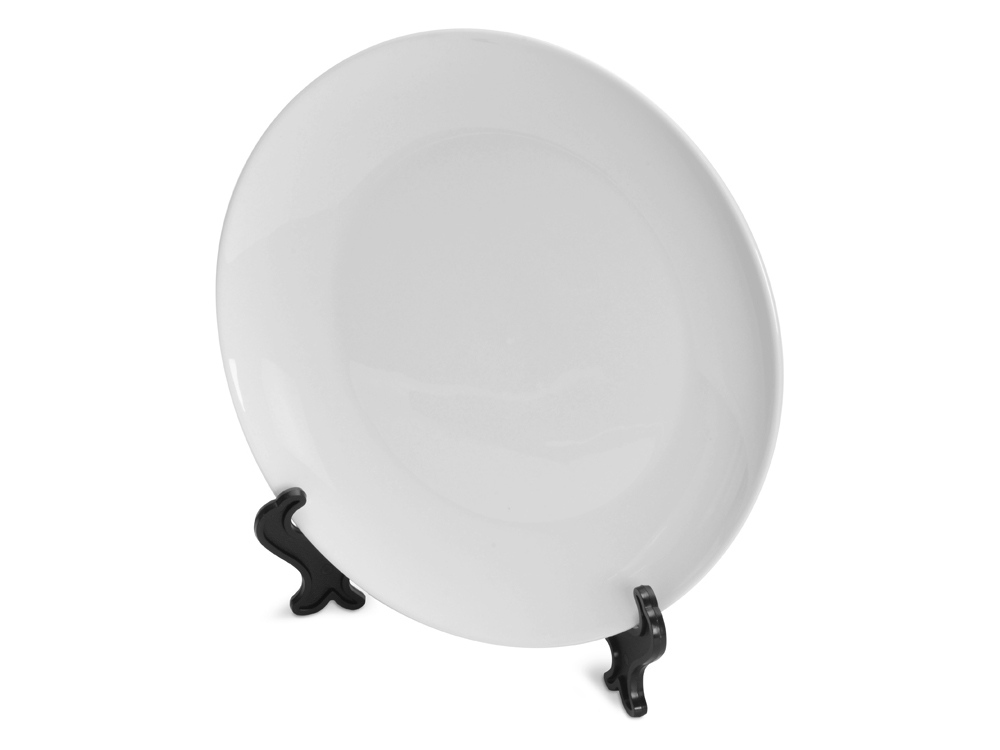 Декоративная тарелка из керамики. Легко установить вертикально благодаря специальным ножкам, поставляемым в комплекте. Большая зона для нанесения. Специальное покрытие предназначено для нанесения изображения методом сублимации.