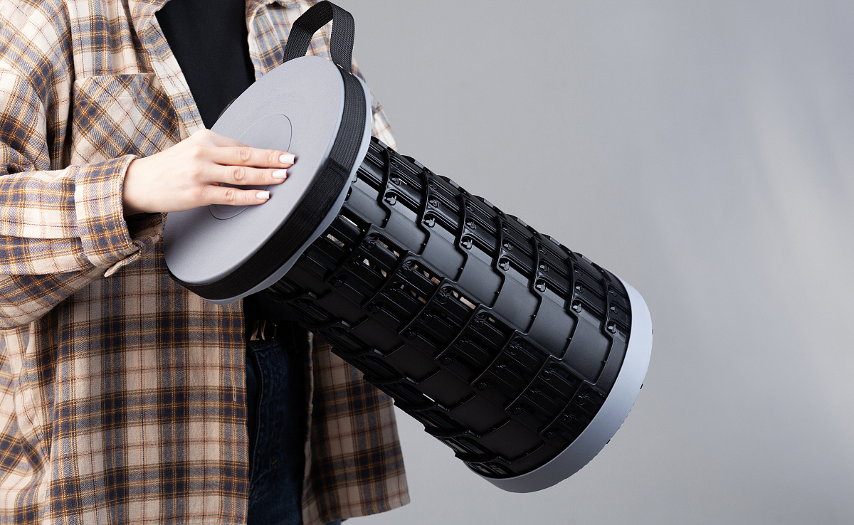 "Tourist" - свободный и независимый, а еще легкий - вес стула всего 1 кг, компактный - размер в сложенном виде d 26 х 7 см.