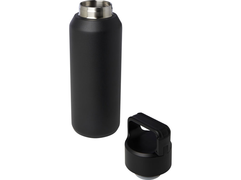Сертифицированная по стандарту RCS бутылка для воды из нержавеющей стали с двойными стенками и медной вакуумной изоляцией, оснащенная крышкой со встроенным карабином, что позволяет легко прикрепить ее к сумке или ремню. Также подходит для газированных напитков. Поставляется в подарочной коробке из переработанного картона. Объем: 600 мл.