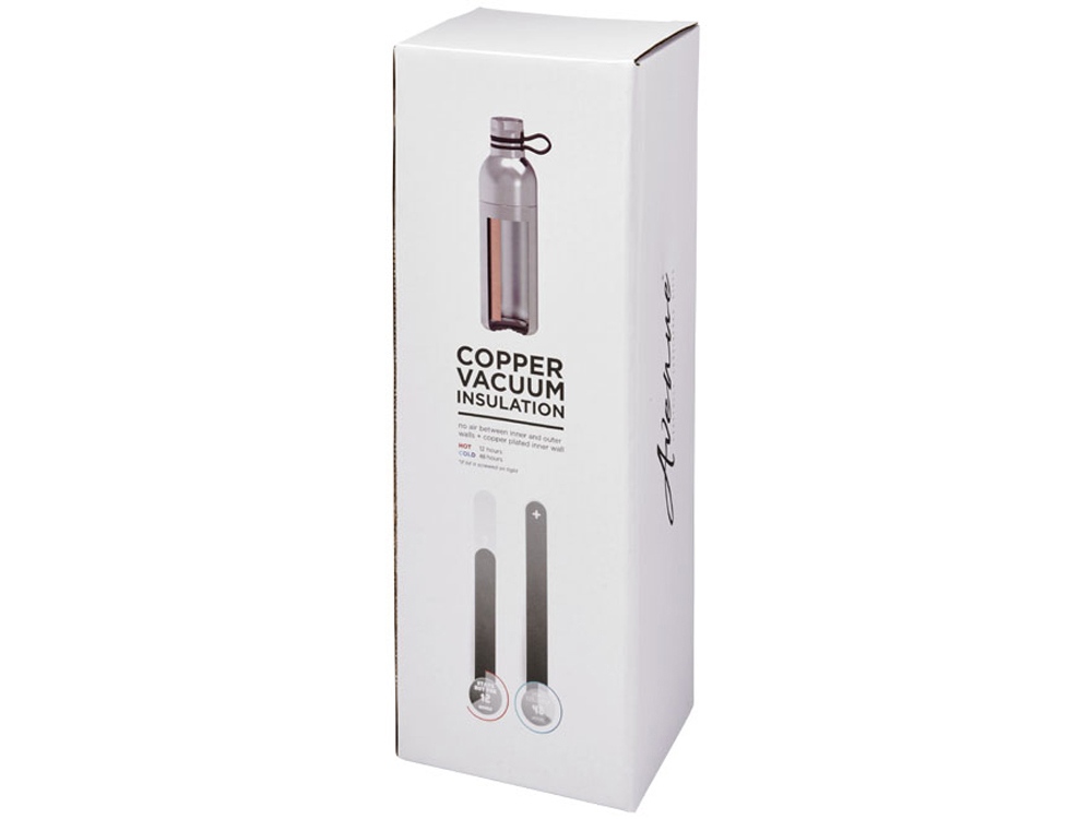 Медная спортивная бутылка с вакуумной изоляцией Koln объемом 590 мл. Двустенная вакуумная конструкция из нержавеющей стали с медной изоляцией позволит вашему напитку оставаться холодным в течение 48 часов и горячим — как минимум 12 часов. Кроме того, конструкция препятствует образованию конденсата на внешней стороне бутылки. Оснащена закручивающимся колпачком и крышкой из нержавеющей стали с удобной силиконовой петлей-держателем. Конструкция с двойным отверстием для легкой очистки и заполнения. Объем — 590 мл. Упакована в подарочной коробке Avenue. Нержавеющая сталь.