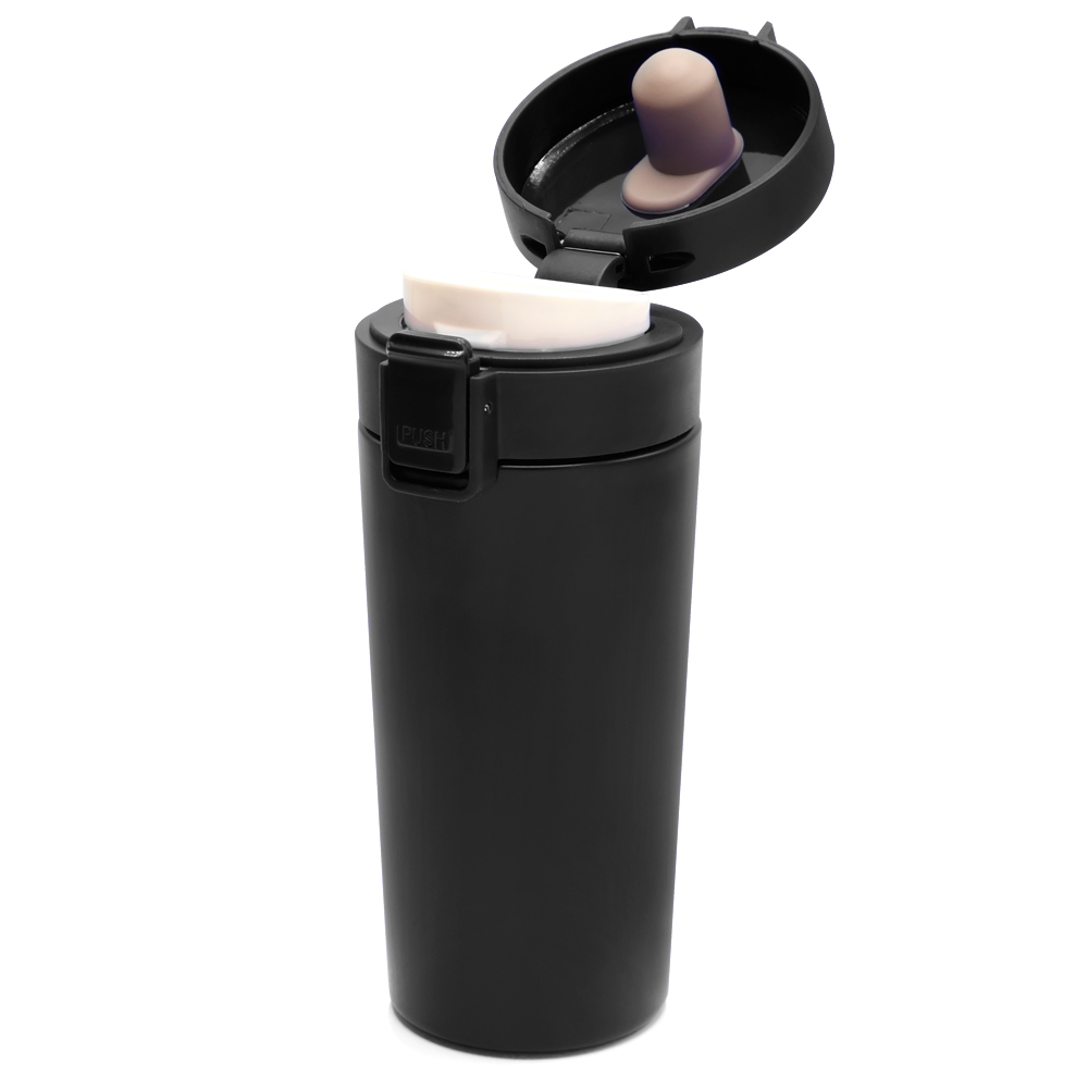 Термокружка Amatto, черного цвета можно заказать в нашей компании по самой доступной цене от 840 рублей.