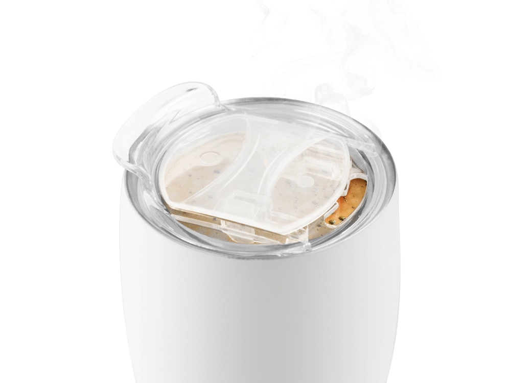 Двойные стенки кружки помогут сохранить температуру напитка в течение нескольких часов: вы можете смело отвлекаться на свои рабочие дела, зная, что на столе вас ждет все такой же горячий и свежий напиток. Прозрачная крышка-слайдер позволяет заглянуть внутрь, не открывая термокружку.