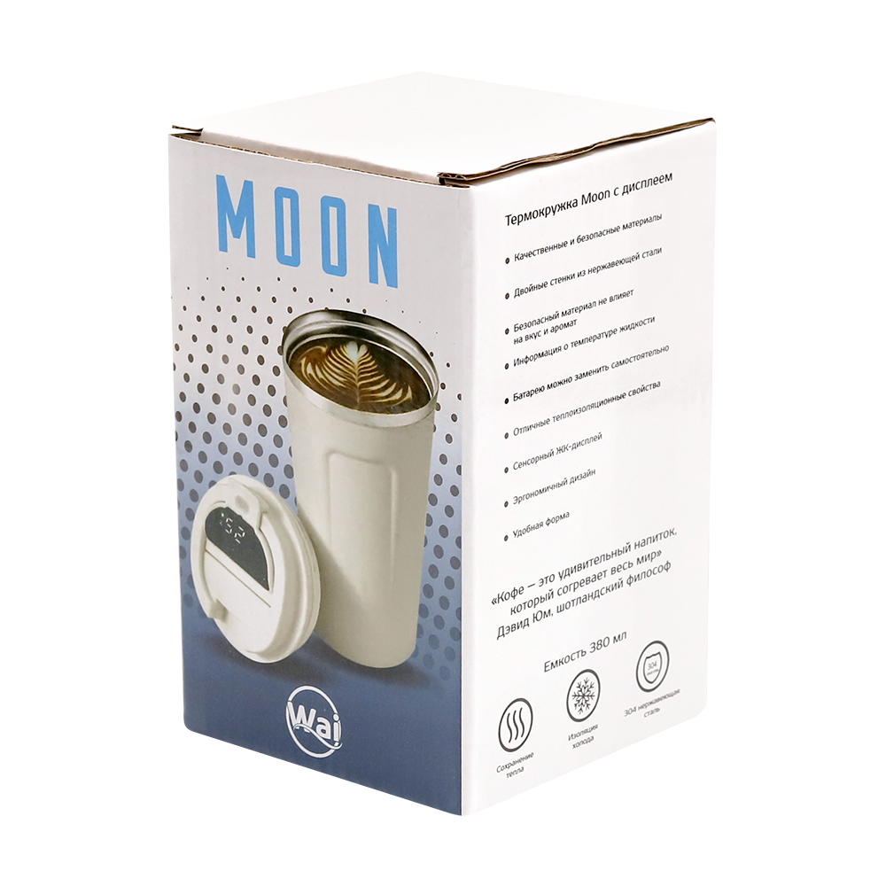 Термокружка Moon с дисплеем, 380мл, белая можно заказать в нашей компании по самой доступной цене от 846.67 рублей.