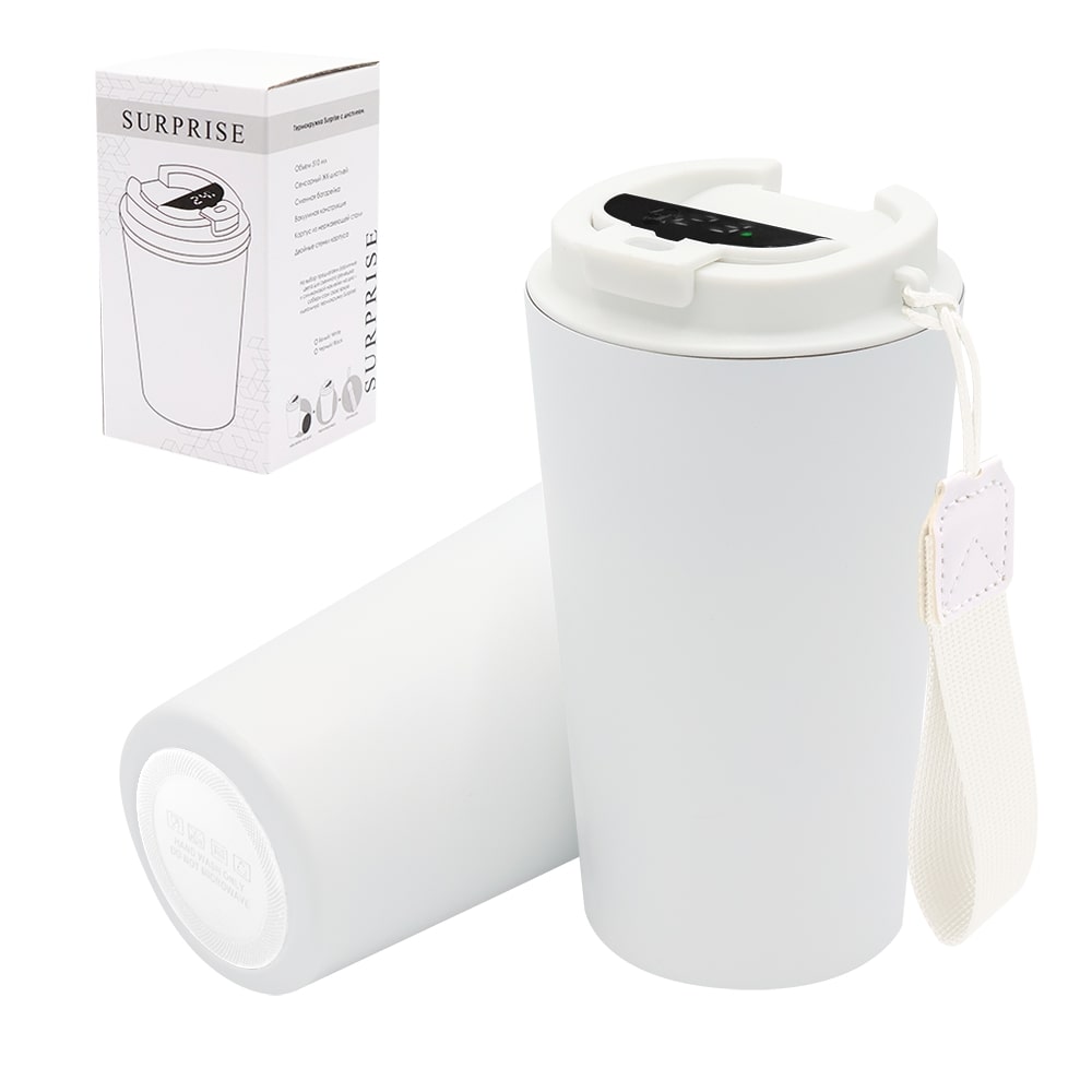 Термокружка Surprise To Go с индикатором, белая можно заказать в нашей компании по самой доступной цене от 1 288.89 рублей.