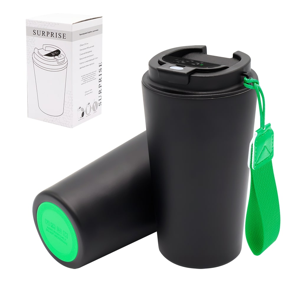 Термокружка Surprise To Go с индикатором, чёрная/зелёная можно заказать в нашей компании по самой доступной цене от 1 288.89 рублей.