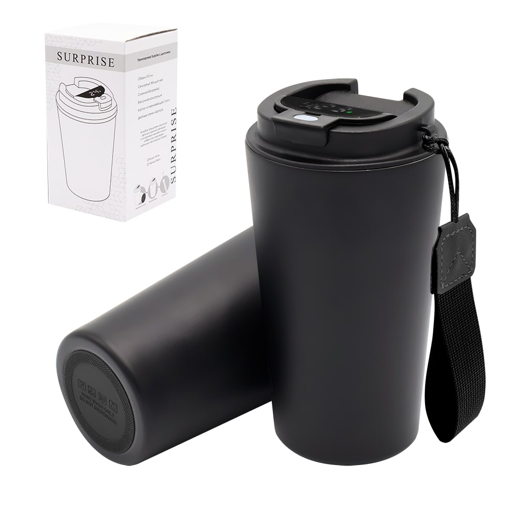Термокружка Surprise To Go с индикатором, чёрная можно заказать в нашей компании по самой доступной цене от 1 288.89 рублей.